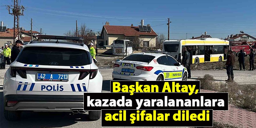 Konya Büyükşehir Belediye Başkanı Uğur İbrahim Altay, kentte sabah saatlerinde meydana gelen trafik kazasından etkilenen öğrencilere, ailelerine ve vatandaşlara geçmiş olsun dileklerini ileterek, "Yaralı kardeşlerimize acil şifalar diliyor, süreci yakında