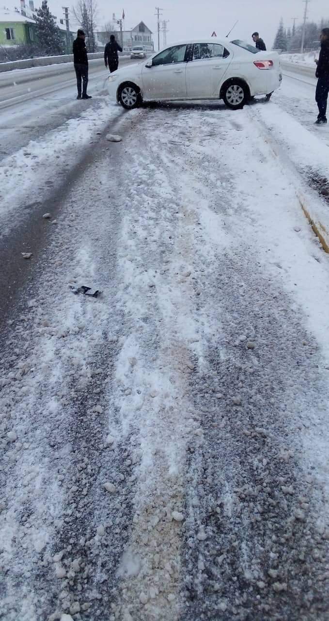 Ereğli ilçesinde buzlanma nedeniyle meydana gelen trafik kazasında kontrolden çıkan otomobil orta refüje çarptı.