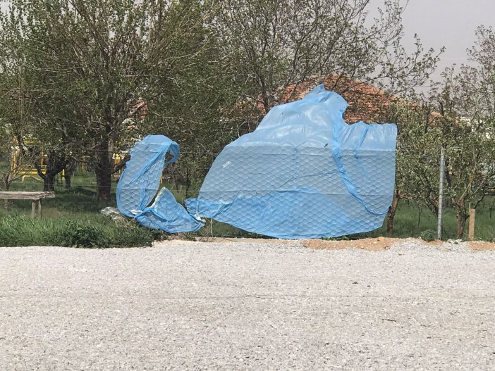 Konya’nın Ereğli ilçesinde şiddetli fırtına ağaçları devirdi, çatıları uçurdu.