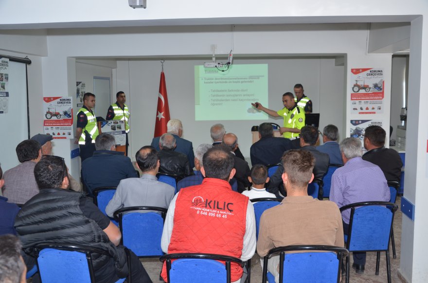 Ereğli’de ilgili kurumlar jandarma trafik ve trafik polisleri, tarım araçlarının güvenli kullanımı konusunda traktör sürücülerini Ereğli İlçe Emniyet Müdürlüğü Eğitim Salonunda düzenlenen toplantı ile bilgilendirdi.