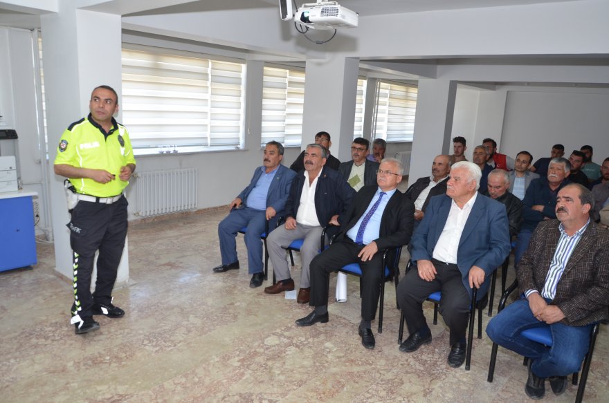 Eğitimde sürücüler, trafik kazalarının önlenmesi amacıyla olası kazalara karşı alınacak tedbirler konusunda sürücüler uyarılmış oldu. Bilgilendirme toplantısının sonrasında sürücülere reflektör dağıtılırken, Reflektörü bulunmayan römorklara ise Emniyet Müdürü Selçuk Muğdatoğlu ve Jandarma Komutanı Hayri Yazıcı tarafından reflektör takıldı.