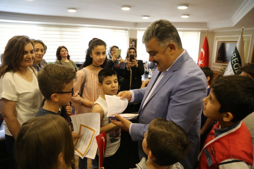 Namık Kemal İlkokulu öğrencileri Belediye Başkanı Özkan Özgüven’i makamında ziyaret ederek karne heyecanlarını paylaştılar.