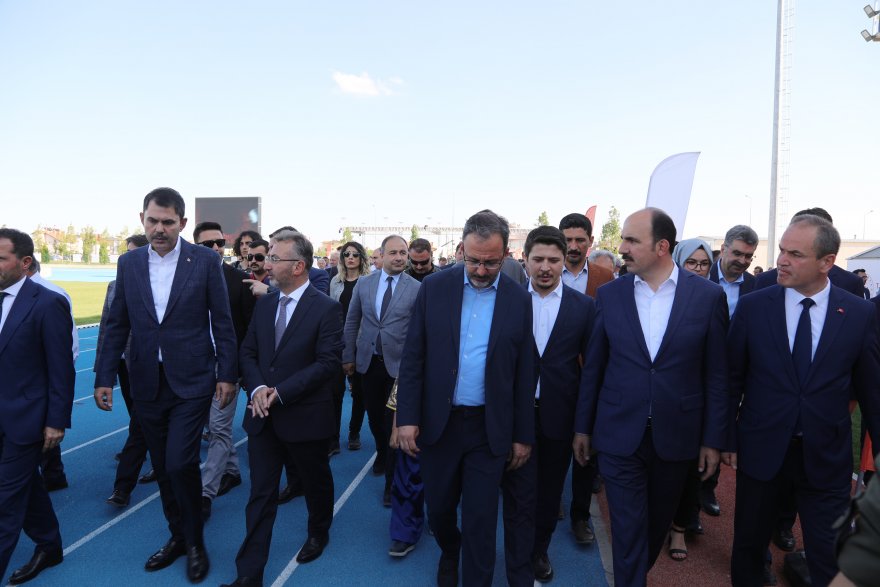 Gençlik ve Spor Bakanı Mehmet Muharrem Kasapoğlu ile Çevre, Şehircilik ve İklim Değişikliği Bakanı Murat Kurum’un katılımıyla yapıldı. Bakan Kasapoğlu, “Konya, bereketli ovalarıyla, topraklarıyla nasıl dillere desten olduysa bundan böyle de sporda marka bir şehir olarak anılacak. Türkiye’deki spor devrimi somut bir şekilde Konya’nın şahitliğinde gerçekleşiyor.” dedi. Bakan Kurum, Konya’nın her zaman altyapısıyla, üstyapısıyla, yollarıyla, yeşil alanıyla örnek bir şehir olduğunu belirterek, Türk sporunun her zaman yanında olduklarını söyledi. Başkan Altay, uluslararası standartlarda bir tesisin açılışını yaptıklarını ifade ederek, Konya’nın oyunlar süresince ev sahipliğini en güzel şekilde gerçekleştireceğini vurguladı.