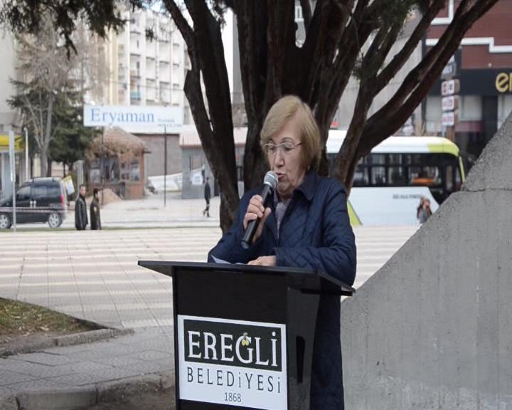 Törende konuşan Türk Kadınlar Birliği Ereğli Şubesi Başkanı Sabiha Zor, "Türk Kadınına Seçme ve Seçilme Hakkının' verilişinin 83. yılı olması sebebiyle burada toplandık. Bilindiği gibi 5 Aralık 1934'de milletvekili seçme ve seçilme haklarını elden Türk kadını layık olduğu değere kavuşmuştur. Kadınlarımız, bugünün kıymetinin farkında olmalılar" şeklinde konuştu.
