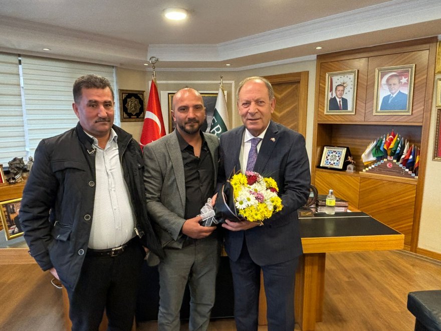 Yenibağlar Mahalle Muhtarı Serkan Akyılan Belediye Başkanı Hüseyin Oprukçu’yu makamında ziyaret ederek şahsı ve mahalle sakinleri adına mahallelerine yapılan hizmetler için teşekkürlerini iletti.